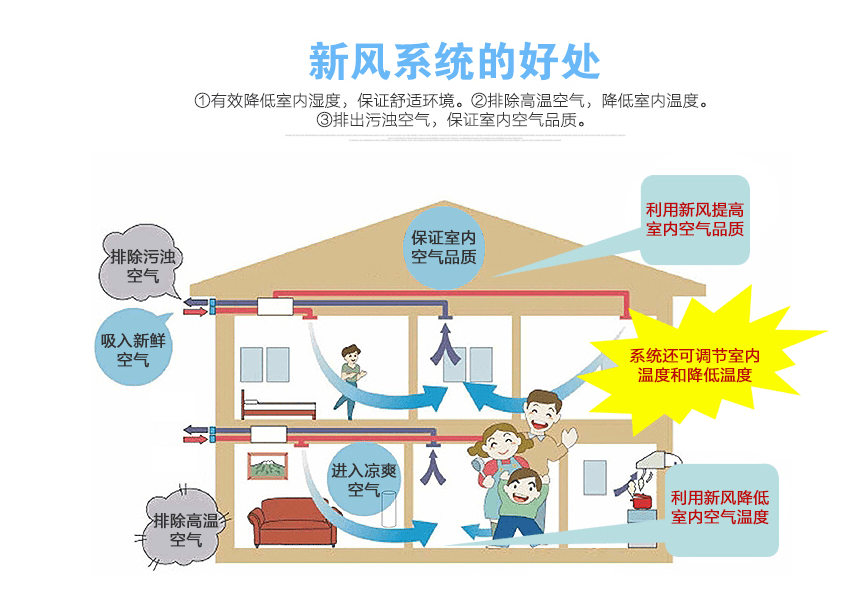 新風(fēng)系統(tǒng)除濕機(jī)系列產(chǎn)品集除濕、新風(fēng)系統(tǒng)、清潔多種多樣作用于一體,既能源源不絕的將空氣清新送進(jìn)房間內(nèi),又能連續(xù)的將房間內(nèi)的有害物質(zhì)、病菌、病毒感染排出來戶外,還能使室內(nèi)濕度維持在人體較為舒服的環(huán)境濕度值,避免 病菌黃曲霉菌的滋長。